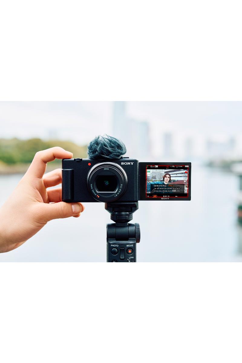 OPPGRADER VLOGGOPPLEVELSEN: Bruk ZV-1 II sammen med GP-VP2BT-grepet og få en mer stabil, intuitiv og morsom vloggopplevelse. Det fungerer uten kabel og krever ikke batteri. Du kan bruke grepet som et ministativ for ZV-1 II og starte opptak direkte fra grepet.
