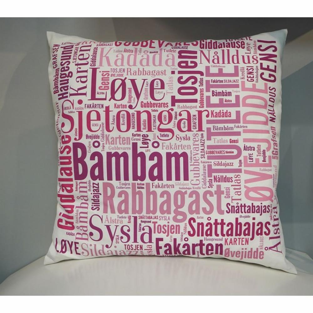 Pute - Hvit med rosa skrift