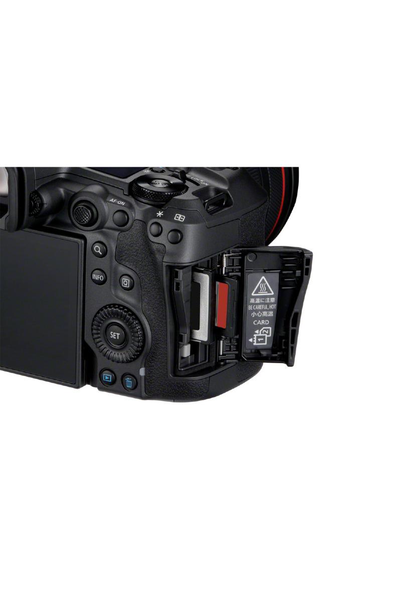Kameraet har sømløs hybrid multi-media funksjonalitet og deler også funksjoner og filformater med vår Canon Cinema EOS-serie. Forbedringer fra EOS R5 inneholder også støtte for 8K 60p fra hele bredden av bildesensoren, og 12-bit RAW internopptak sammen med 4K video opp til 120p – med lyd og 4K 60p. Det nye kjølegrepet er laget for å forlenge opptakstider ved dekning av eventer, intervjuer og høykvalitets strømming.