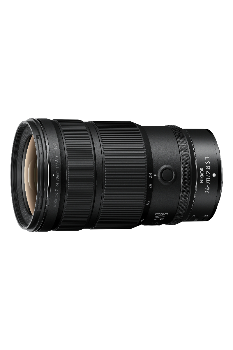 NIKKOR Z 24-70mm f/2.8 S II. Denne arbeidshesten av et zoomobjektiv har fått en helt ny utforming med innvendig zoom, raskere autofokus og en ny optisk konstruksjon, og er nå lettere, skarpere, bedre balansert samt bedre for film. Det er det første profesjonelle 24–70 mm fullformatsobjektivet i verden som har innvendig zoom – og det er også det letteste objektivet i sin klasse med en vekt på bare 675 g.1